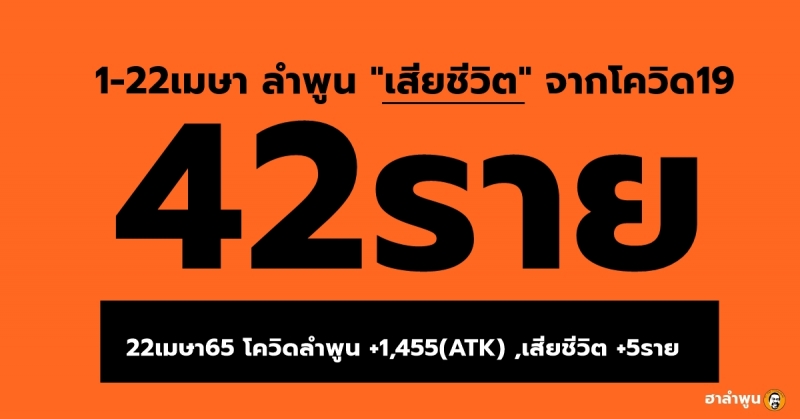 22เมษา65 โควิดลำพูน +1,455(ATK) ,เสียชีวิต +5ราย
