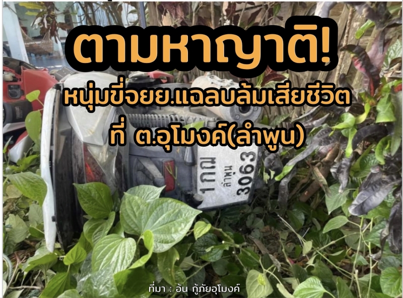 | • ตามหาญาติ! หนุ่มขี่ จยย.แฉลบล้มเสียชีวิตที่อุโมงค์(ลำพูน) |