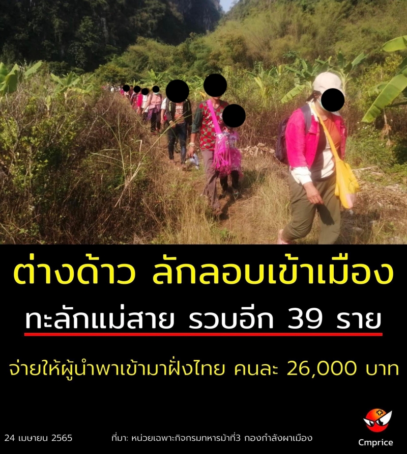 "ต่างด้าว ลักลอบเข้าเมืองทะลักแม่สาย” รวบอีก 39 ราย เสียค่าใช้จ่ายให้ผู้นำพาเข้ามาฝั่งไทย คนละ 26,000 บาท