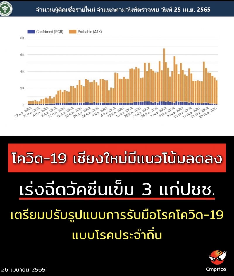 สถานการณ์การแพร่ระบาดโรคโควิด-19 ของจังหวัดเชียงใหม่มีแนวโน้มลดลง เร่งฉีดวัคซีนเข็ม 3 แก่ประชาชนเตรียมปรับรูปแบบการรับมือโรคโควิด-19 แบบโรคประจำถิ่น