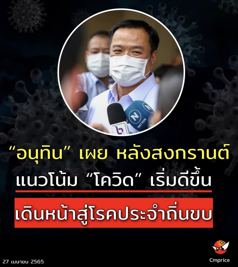| • อนุทิน เผย หลังสงกรานต์แนวโน้ม โควิด เริ่มดีขึ้น เดินหน้าสู่โรคประจำถิ่น |