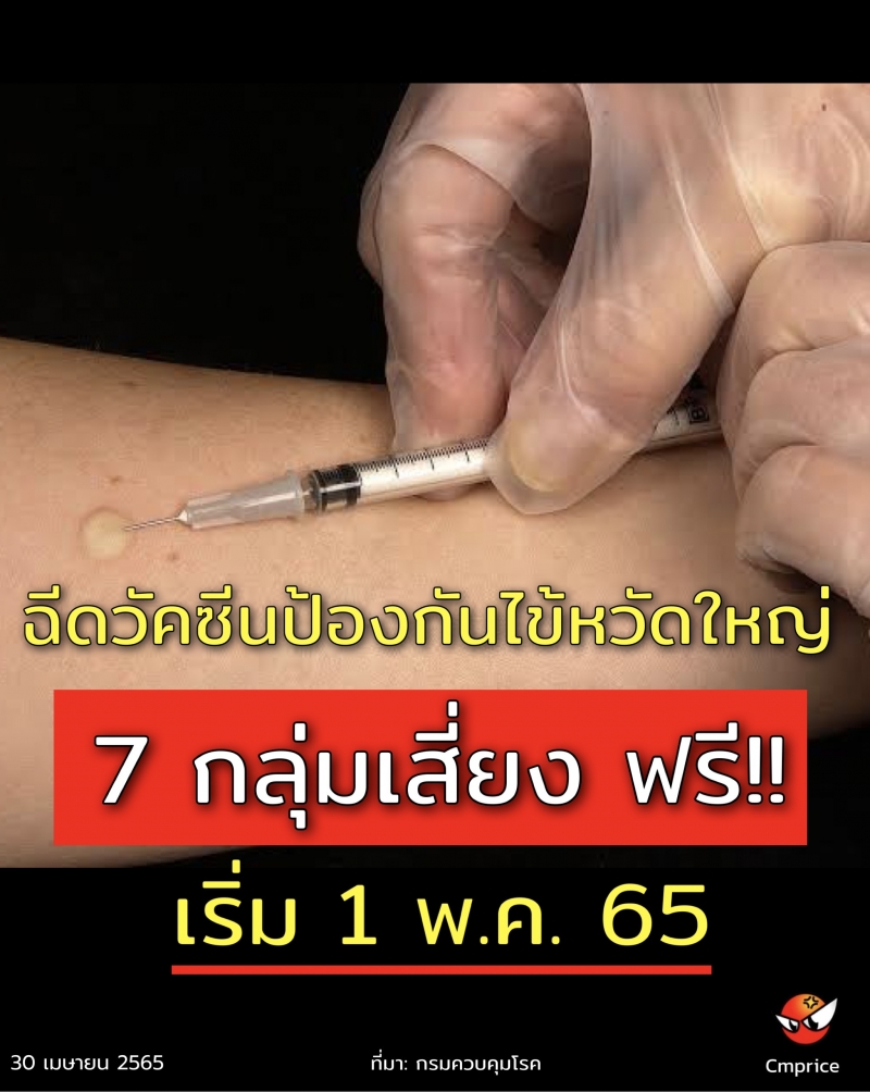 | • ฉีดวัคซีนป้องกันไข้หวัดใหญ่ 7 กลุ่มเสี่ยง ฟรี!! เริ่ม 1 พ.ค. 65 |
