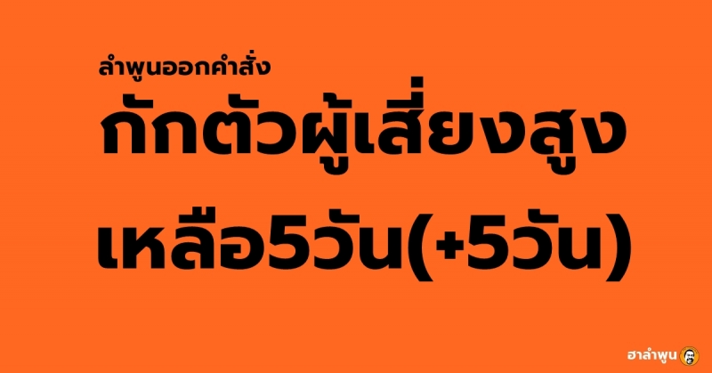 | • ลำพูนออกคำสั่ง กักตัวผู้เสี่ยงสูงเหลือ5วัน(+5วัน) |