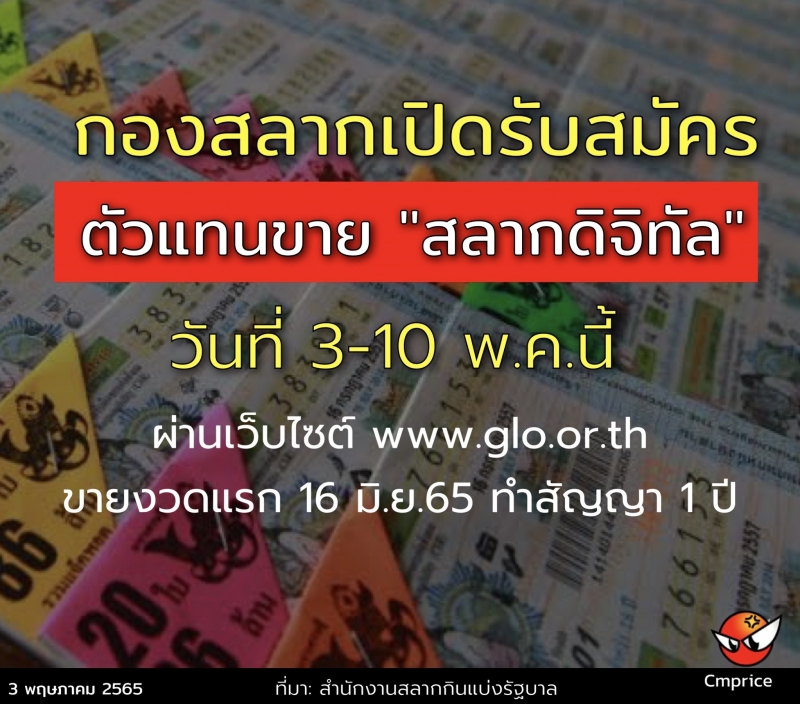 | • กองสลากเปิดรับสมัครตัวแทนขาย "สลากดิจิทัล" 3-10 พ.ค.นี้ |