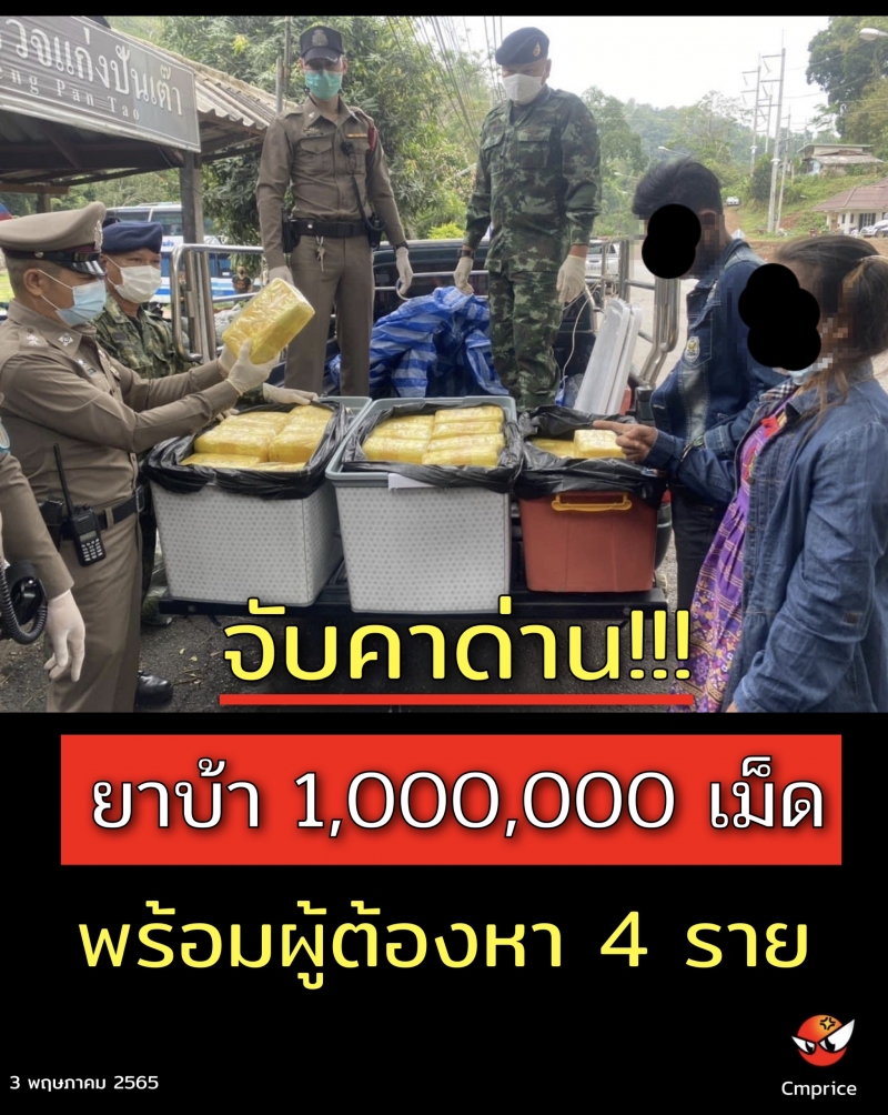 | • จับ ยาบ้า 1,000,000 เม็ด คาด่านตรวจแก่งปันเต๊า!! พร้อมผู้ต้องหา 4 ราย |