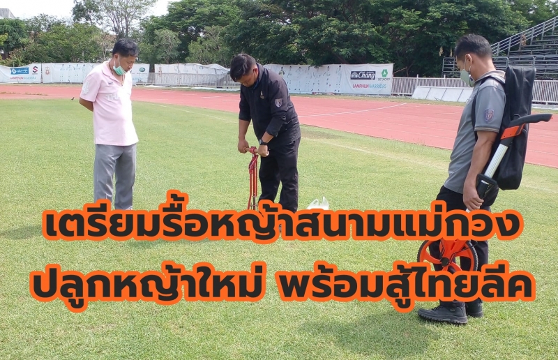 | • เตรียมรื้อหญ้าสนามแม่กวง ปลูกหญ้าใหม่ สู้ไทยลีค เพื่อความสุขของคนลำพูนได้เชียร์บอลในบ้าน |