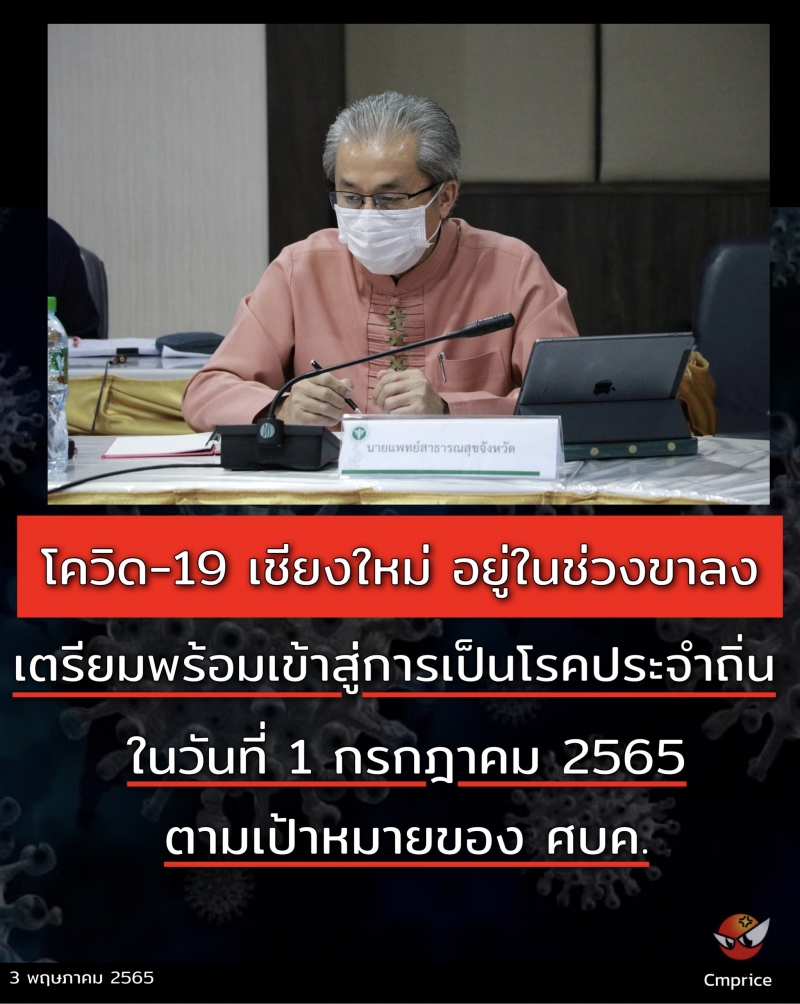 สถานการณ์การแพร่ระบาดโควิด-19 จังหวัดเชียงใหม่ พบว่าอยู่ในช่วงขาลง แต่ยังคงรณรงค์ให้ประชาชนเข้ารับการฉีดวัคซีนเข็มที่ 3 เพื่อสร้างภูมิคุ้มกันโรค และเตรียมพร้อมเข้าสู่การเป็นโรคประจำถิ่น