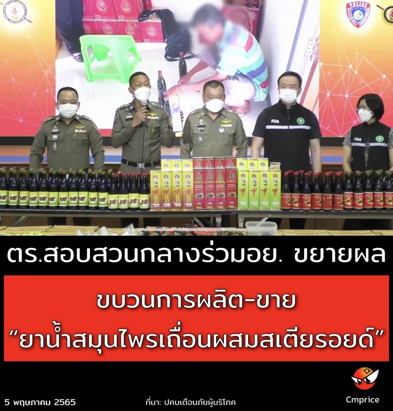 คบ.ขยายผลหาแหล่งผลิตยาสเตียรอยด์ที่นำมาปลอมปนในผลิตภัณฑ์เครื่องดื่มสมุนไพรและหลอกขายกับผู้บริโภคในกลุ่มผู้สูงอายุต่อไป