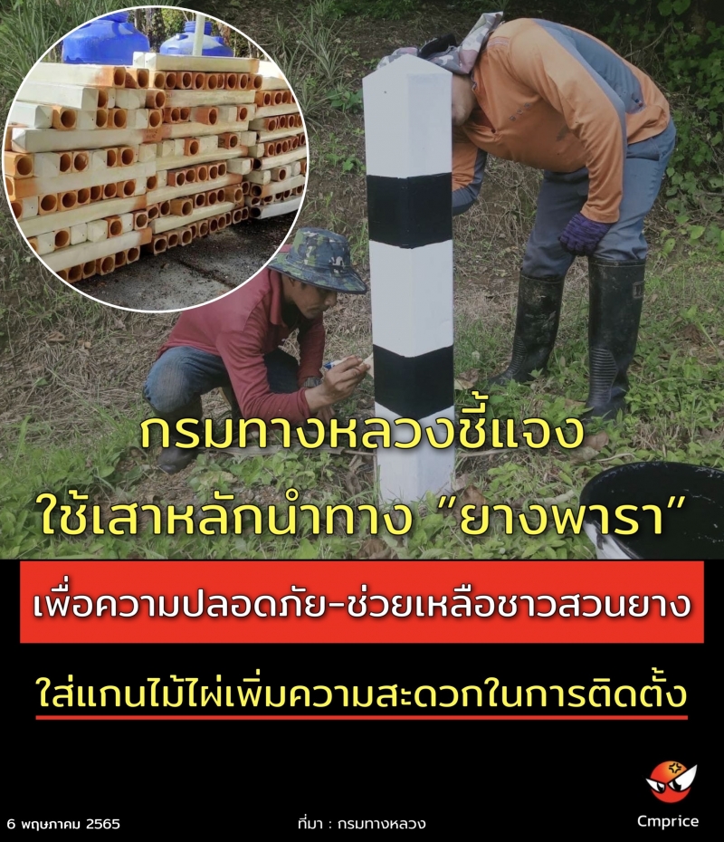 “อธิบดีกรมทางหลวง” ชี้แจงกรณีเสาหลักนำทางยางพารา เป็นการติดตั้งเพื่อความปลอดภัยกับผู้ใช้ทาง และช่วยเหลือเกษตรชาวสวนยาง ในช่วงที่ราคายางตกต่ำ ยืนยันว่า ดำเนินการโดยความโปร่งใส ตามระเบียบ กฎหมาย
