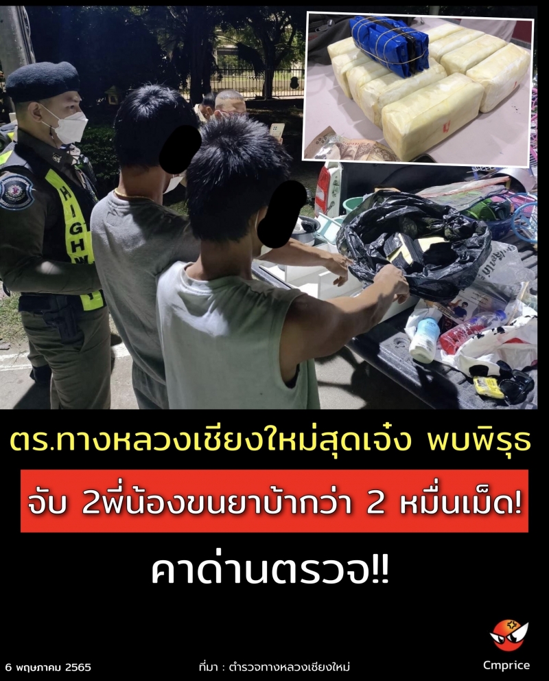 ตำรวจทางหลวงเชียงใหม่สุดเจ๋ง พบพิรุธ จับ2พี่น้องขนยาบ้ากว่า 2 หมื่นเม็ด