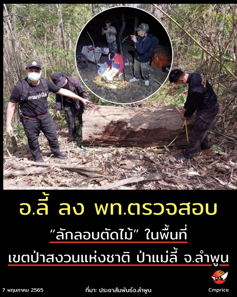 อ.ลี้ และหน่วยงานที่เกี่ยวข้อง ร่วมกันลงพื้นที่ตรวจสอบข้อร้องเรียนจากปชช. พบมีการลักลอบตัดไม้ในพื้นที่เขตป่าสงวนแห่งชาติป่าแม่ลี้ และได้ทำการตรวจยึดของกลางส่งพนักงานสอบสวน สภ.ลี้ ดำเนินคดีตามกฎหมาย