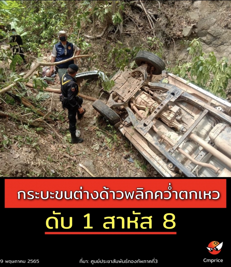 กระบะขนต่างด้าวพลิกคว่ำตกเหว ดับ 1 สาหัส 8 จนท. เข้าให้การช่วยเหลือ