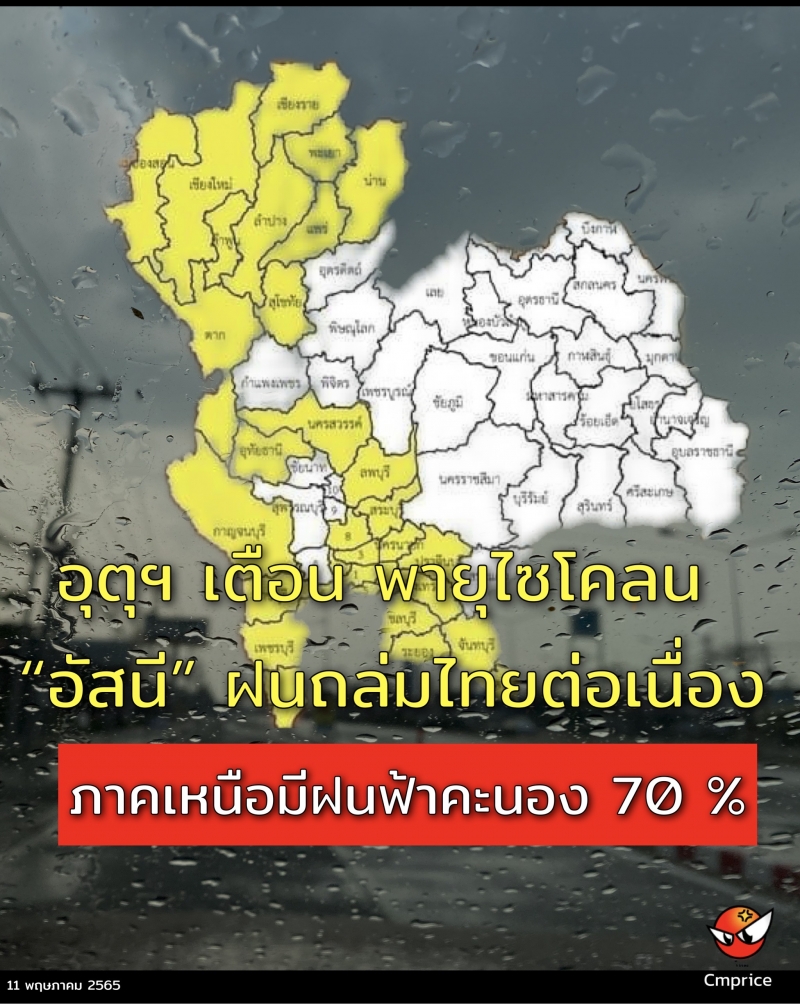 | • อุตุฯ เตือน พายุไซโคลน อัสนี ฝนถล่มไทยต่อเนื่อง ภาคเหนือมีฝนฟ้าคะนอง 70 % |