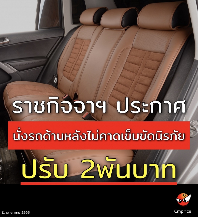 ราชกิจจาฯ ประกาศ นั่งรถด้านหลังไม่คาดเข็มขัดนิรภัย ปรับ2พันบาท