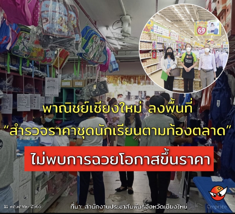 วันนี้ (11 พ.ค. 65) สำนักงานพาณิชย์จังหวัดเชียงใหม่ โดย นางพนิดา วานิชรัตน์ พาณิชย์จังหวัดเชียงใหม่ ลงพื้นที่ติดตามสถานการณ์สินค้าทางการศึกษา ในช่วงใกล้เปิดเทอม ภาคเรียนที่ 1 ปีการศึกษา 2565 พบราคาขายปกติ แต่ยอดขายลดลง 50%