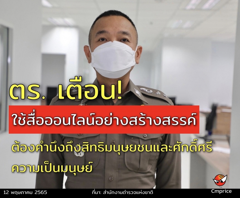 11 พ.ค. 2565 พ.ต.อ.ศิริวัฒน์ ดีพอ รองโฆษกสำนักงานตำรวจแห่งชาติ กล่าวว่า ในช่วงที่ผ่านมา สำนักงานตำรวจแห่งชาติ พบว่ามีการเผยแพร่ข้อมูลในลักษณะที่กระทบต่อสิทธิมนุษยชน และศักดิ์ศรีความเป็นมนุษย์ของบุคคลอื่นทางสื่อสังคมออนไลน์เป็นจำนวนมาก ทั้งในรูปแบบของ ข้อความ รูปภาพ และคลิปวีดิโอ เช่น การล้อเลียนในสภาพร่างกายหรือความพิการของบุคคลอื่น ฐานะทางการเงิน ฐานะทางสังคม ตลอดจนแนวคิดทางการเมืองของบุคคลอื่นอาจทำให้สื่อสังคมออนไลน์กลายเป็นต้นตอของความเกลียดชัง และความขัดแย้งในสังคมนั้น