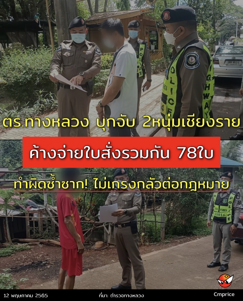 ปรากฎพบการกระทำความผิดตามใบสั่งจำนวน 25 ครั้ง ตามหมายจับของศาลแขวงจังหวัดเชียงราย ที่ จ 33 / 2565 ลงวันที่ 13 เมษายน 2565