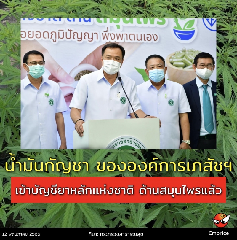 (12 พ.ค.) นายอนุทิน ชาญวีรกูล รองนายกรัฐมนตรีและ รมว.สาธารณสุข แถลงข่าวน้ำมันสารสกัดจากกัญชาขององค์การเภสัชกรรม ได้รับการบรรจุในบัญชียาหลักแห่งชาติด้านสมุนไพร โดยเป็นที่น่ายินดีว่าน้ำมันสารสกัดกัญชาทางการแพทย์ขององค์การเภสัชกรรม ทั้ง 3 สูตรได้รับการบรรจุเป็นรายการยาจากสมุนไพรในบัญชียาหลักแห่งชาติด้านสมุนไพร พ.ศ.2564 แล้ว โดยได้มีการประกาศในราชกิจจานุเบกษาไปเมื่อวันที่ 14 พ.ค. 2564 ที่ผ่านมา ซึ่งไม่เพียงจะช่วยให้ผู้ป่วยมีทางเลือกในการรักษาสุขภาพได้มากขึ้น แต่ยังจะช่วยให้ประเทศชาติมีความเข้มแข็งทางยาลดค่าใช้จ่ายในการนำเข้ายาราคาสูงจากต่างประเทศ ได้อีกด้วย