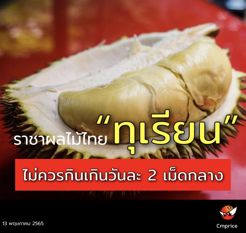 | • ทุเรียน ไม่ควรกินเกินวันละ 2 เม็ดกลาง |