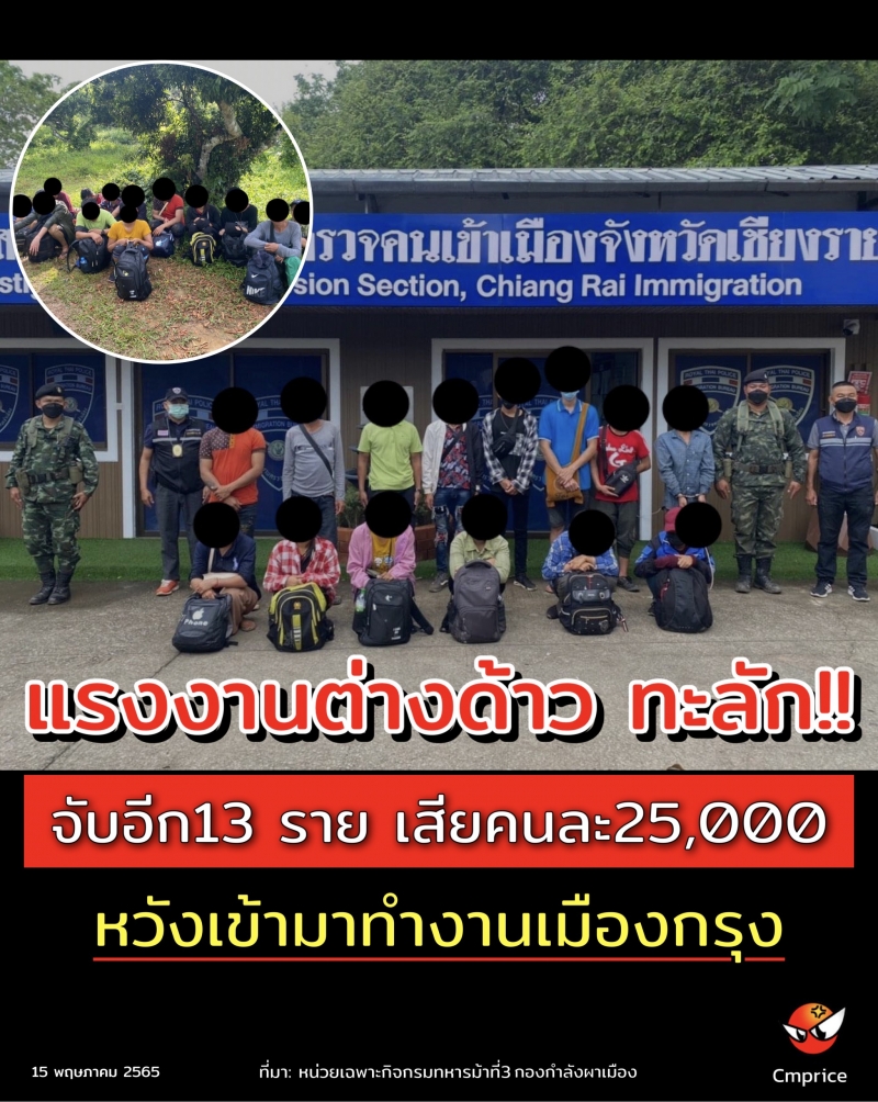 แรงงานต่างด้าว ทะลัก!! จับอีก13 ราย เสียคนละ25,000 หวังเข้ามาทำงานเมืองกรุง