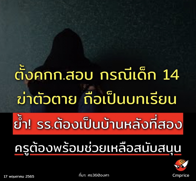 | • รมว.ศธ. ตั้งคกก.สอบ กรณีเด็ก14ฆ่าตัวตาย ถือเป็นบทเรียน |