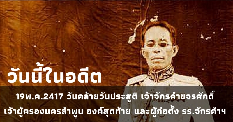 | • 19พ.ค.2417 วันคล้ายวันประสูติ เจ้าจักรคำขจรศักดิ์ เจ้าผู้ครองนครลำพูน องค์สุดท้าย และผู้ก่อตั้ง รร.จักรคำฯ |