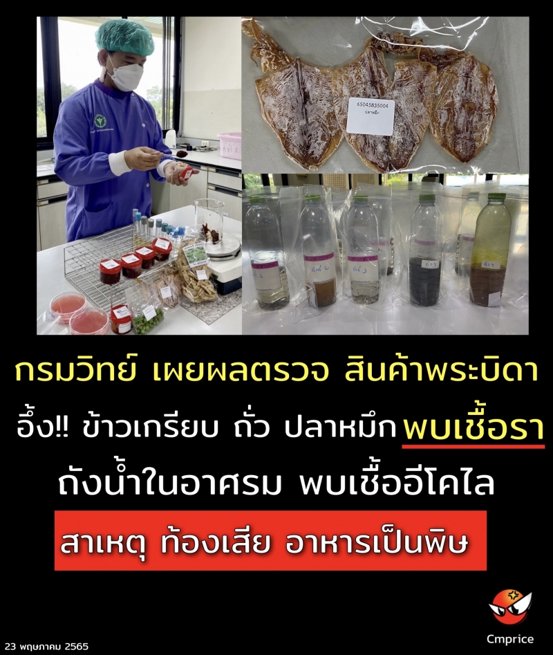 ฉบับที่ 3 สาเหตุเนื่องจากในตัวอย่างข้าวเกรียบปลาทู ถั่วลันเตาคลุกเกลือ และปลาหมึกแห้ง ตรวจพบเชื้อราเกินมาตรฐานกำหนด