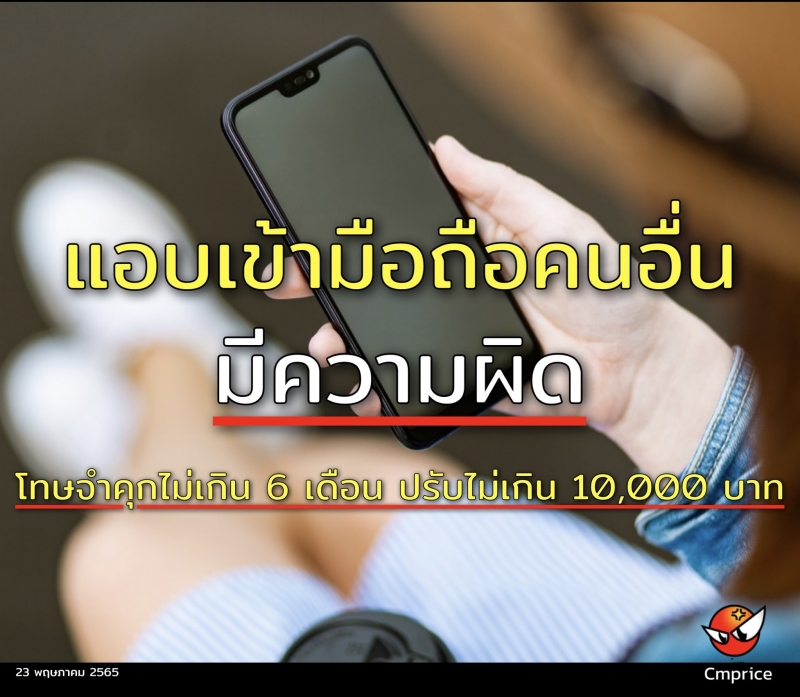 | • แอบเข้ามือถือคนอื่น มีความผิดโทษจำคุกไม่เกิน 6 เดือน ปรับไม่เกิน 10,000 บาท |