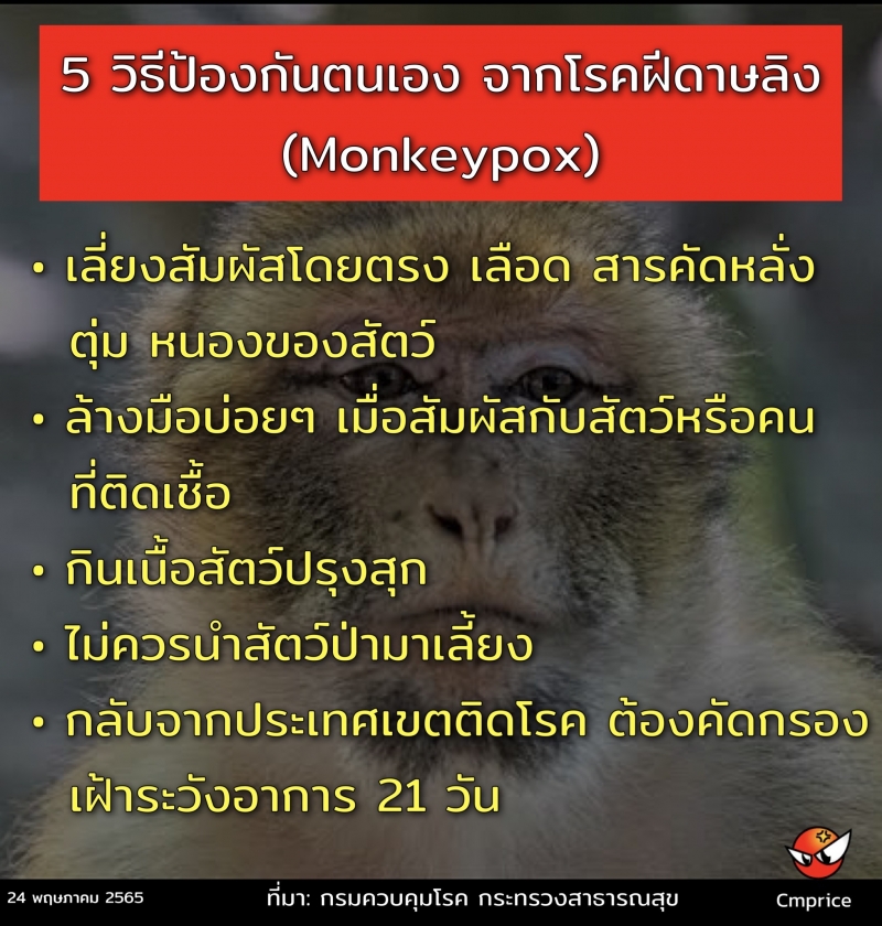 5 วิธีป้องกันตนเอง จากโรคฝีดาษลิง (Monkeypox)