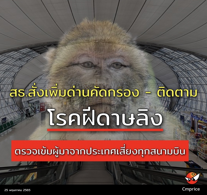 สธ.สั่งเพิ่มด่านคัดกรอง - ติดตามโรคฝีดาษลิง ตรวจเข้มผู้มาจากประเทศเสี่ยง (เบื้องต้น 17 ปท.) ทุกสนามบิน