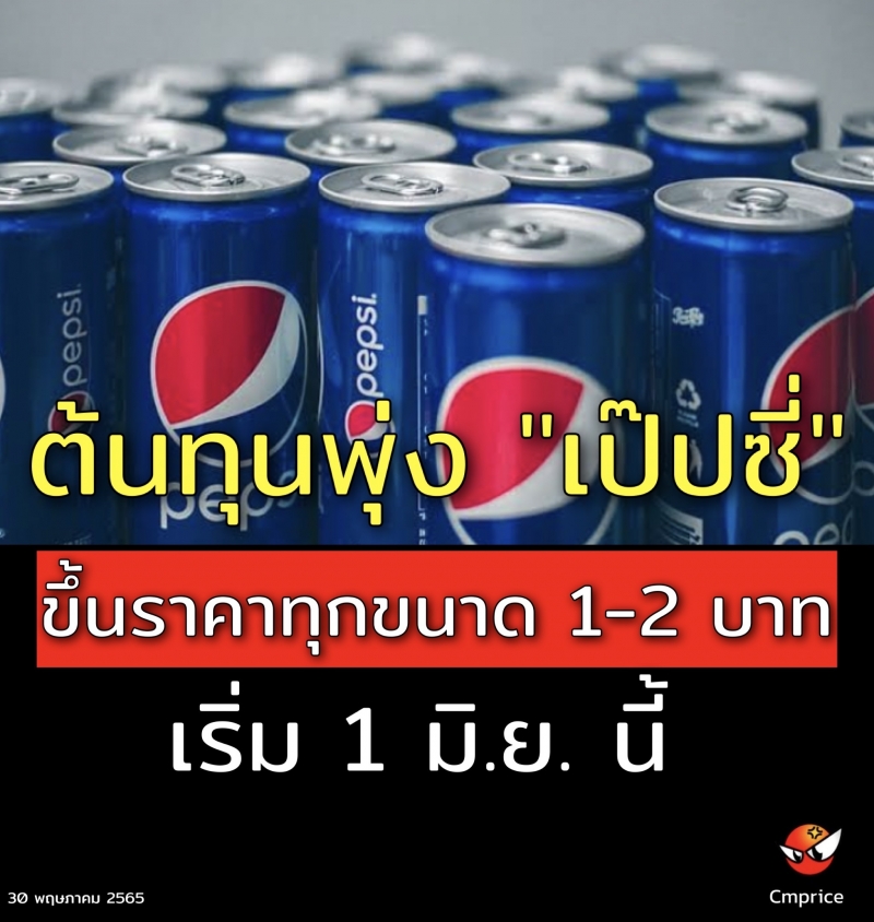 ต้นทุนพุ่ง "เป๊ปซี่" ขึ้นราคาทุกขนาด 1-2 บาท 1 มิ.ย.นี้