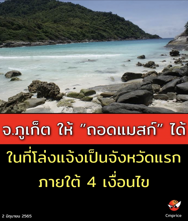 | • ภูเก็ตนำร่องให้ถอดแมสก์ ได้ในที่โล่งแจ้งเป็นจังหวัดแรกภายใต้ 4 เงื่อนไข |