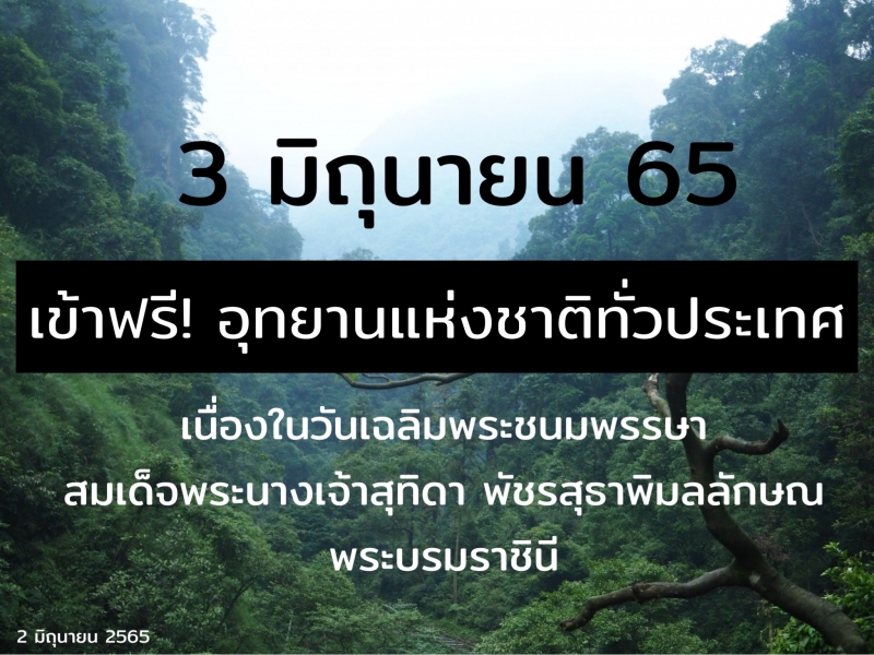 | • 3 มิ.ย. 65 เข้าฟรี!! อุทยานแห่งชาติทั่วประเทศ |