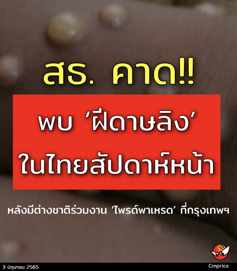 | • สธ.คาดพบ ฝีดาษลิงในไทยสัปดาห์หน้า หลังมีต่างชาติร่วมงาน ไพรด์พาเหรด ที่กรุงเทพฯ |