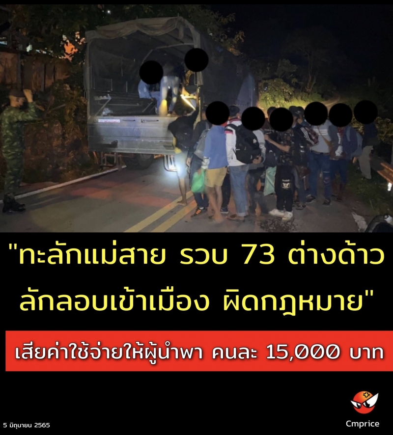 | • "ทะลักแม่สาย รวบ 73 ต่างด้าว ลักลอบเข้าเมือง ผิดกฎหมาย"เสียค่าใช้จ่ายให้ผู้นำพา คนละ 15,000 บาท |