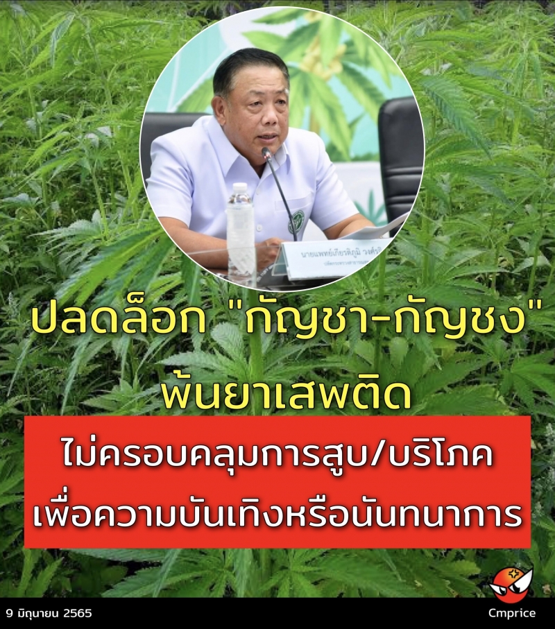 นพ.มล.สมชาย จักรพันธุ์ ประธานที่ปรึกษารัฐมนตรีว่าการกระทรวงสาธารณสุข กล่าวว่า ตามที่ประกาศกระทรวงสาธารณสุข เรื่อง ระบุชื่อยาเสพติดให้โทษในประเภท 5 พ.ศ. 2565 จะมีผลบังคับใช้ตั้งแต่วันที่ 9 มิ.ย. 2565 ทำให้ทุกส่วนของกัญชากัญชงไม่เป็นยาเสพติด ยกเว้นสารสกัดที่มีสาร THC เกิน 0.2% โดยน้ำหนักที่ยังคงเป็นยาเสพติด ทั้งนี้ นายอนุทิน ชาญวีรกูล รองนายกรัฐมนตรีและรัฐมนตรีว่าการกระทรวงสาธารณสุข เน้นย้ำถึงนโยบายที่รัฐบาลโดยกระทรวงสาธารณสุขผลักดันมาตลอด คือการนำกัญชา กัญชง มาใช้เพื่อประโยชน์ทางการแพทย์ การดูแลสุขภาพ การสร้างมูลค่าเพิ่มทางเศรษฐกิจ สร้างรายได้ให้ให้แก่ประชาชน โดยไม่มีการสนับสนุนให้ใช้กัญชากัญชงในทางที่ไม่เหมาะสม  สำหรับการกระตุ้นเศรษฐกิจนั้นทางกระทรวงสาธารณสุขได้มีการอนุญาตผลิตภัณฑ์สุขภาพที่มีส่วนประกอบของกัญชากัญชงและสารสกัด CBD เช่น เครื่องสำอาง ผลิตภัณฑ์อาหาร ผลิตภัณฑ์สมุนไพรและตำรับยาไทยมากถึง 1,181 รายการ โดยผลการวิจัยของธนาคารกรุงศรีอยุธยาเมื่อปี 2564 คาดว่าในปี 2569 ตลาดกัญชงจะเจริญเติบโตและมีมูลค่ามากถึง 15,000 ล้านบาท และอาจจะสร้างมูลค่าทางเศรษฐกิจได้มากกว่านี้ เนื่องด้วยมีการประเมินมูลค่าตลาดกัญชาที่ถูกกฎหมายทั่วโลกมีมูลค่ากว่า 500,000 ล้านบาท และมีอัตราการเติบโตมากกว่าร้อยละ 17 โดยกัญชาในอุตสาหกรรมทางการแพทย์และสุขภาพสร้างรายได้ถึงร้อยละ 70 ของมูลค่าทั้งหมด ทั้งนี้ กระทรวงสาธารณสุขได้มีการแต่งตั้งคณะกรรมการสื่อสารและประชาสัมพันธ์การใช้กัญชาอย่างเข้าใจ เพื่อร่วมกันสื่อสารทำความเข้าใจการใช้กัญชากัญชงที่ถูกต้องกับประชาชน