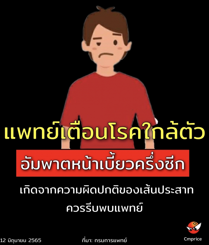 กรมการแพทย์ โดยสถาบันประสาทวิทยา เผยเป็นอาการที่เกิดการอ่อนแรงของใบหน้าครึ่งซีก ทำให้ไม่สามารถขยับใบหน้าซีกนั้นได้ เป็นผลมาจากการอักเสบของเส้นประสาทใบหน้าหรือเส้นประสาทสมองคู่ที่ 7