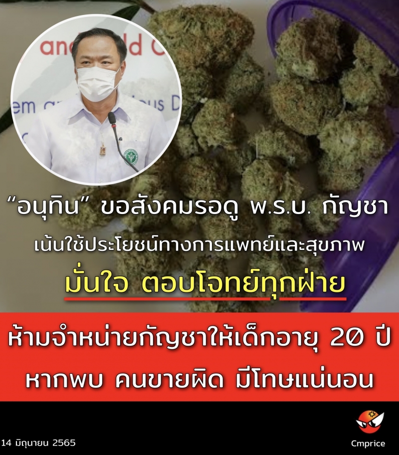 | • อนุทิน ขอสังคมรอดู พ.ร.บ. กัญชา มั่นใจ ตอบโจทย์ทุกฝ่าย |
