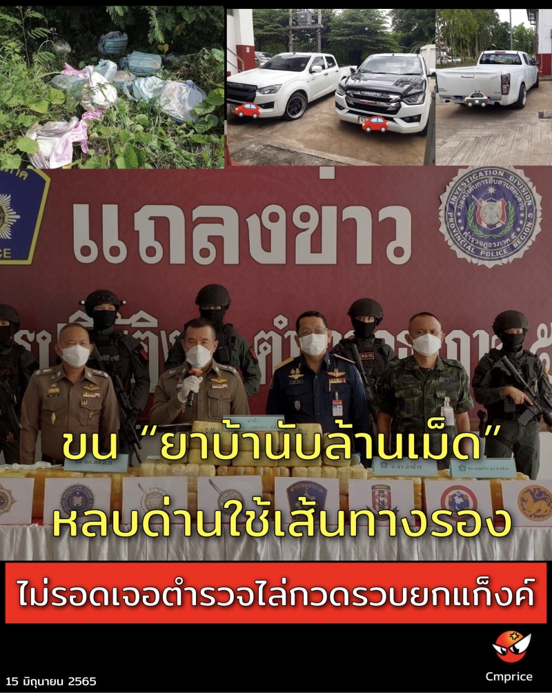 ขนยาบ้านับล้านเม็ดหลบด่านใช้เส้นทางรอง ไม่รอดเจอตำรวจไล่กวดรวบยกแก็งค์