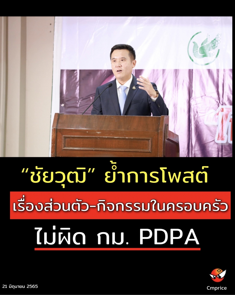 | • ชัยวุฒิ ย้ำโพสต์เรื่องส่วนตัว-กิจกรรมในครอบครัวไม่ผิด กม. PDPA |