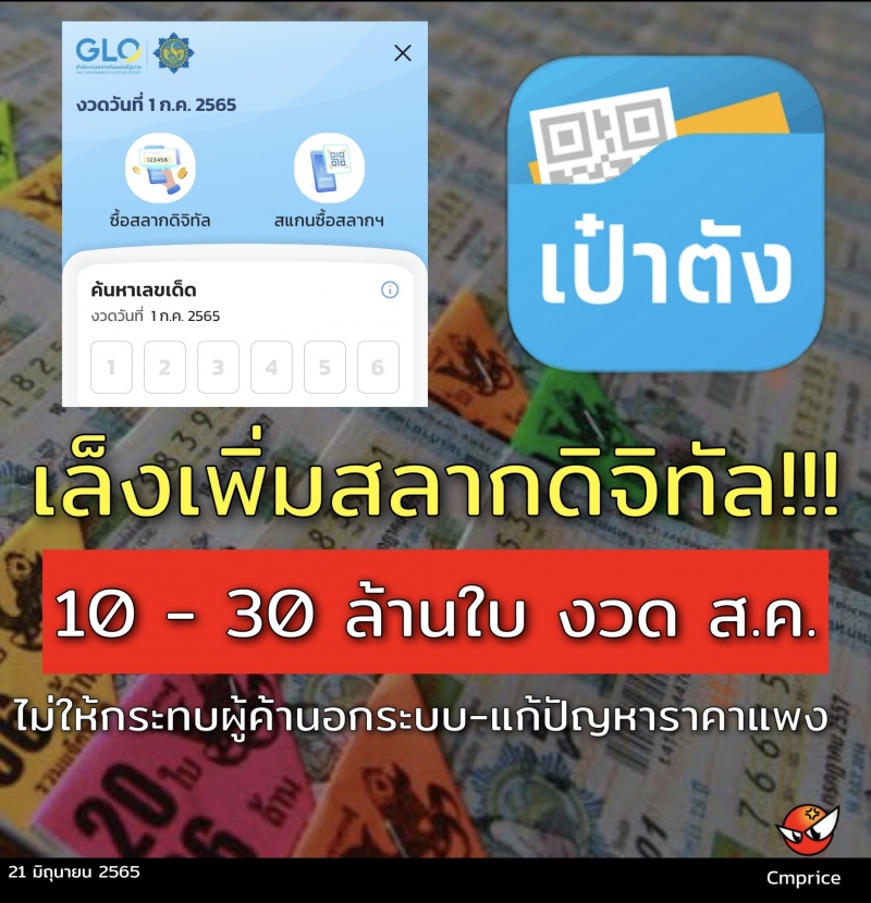 | • เล็งเพิ่มสลากดิจิทัล 10 - 30 ล้านใบ งวด ส.ค. |