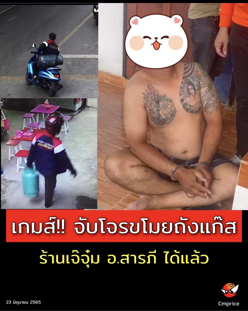 จากกรณีเมื่อวันที่ 20 มิถุนายน2565 เวลาประมาณ 18.30น. ร้าน เจ้จุ๋ม ข้าวราดแกง ตามสั่ง ซึ่งเปิดร้านอยู่ในอ.สารภี ได้มีโจรขโมยถังแก๊ส จากในคลิปกล้องวงจรปิดได้บันทึกภาพ ขณะคนร้ายเข้ามาขโมยถังเเก๊สเอาไว้ได้