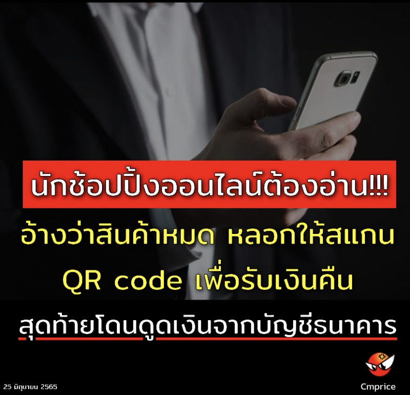 ตำรวจภูธรจังหวัดเชียงใหม่โพสต์ Facebook แจ้งเตือนประชาชน ที่ชอบการ Shoppingออนไลน์ ว่ามีมิจฉาชีพหลอกดูดเงินในบัญชีด้วยรูปแบบการหลอกแบบใหม่ ระบุ อ้างว่าสินค้าหมด หลอกให้สแกน QR code เพื่อรับเงินคืน สุดท้ายโดนดูดเงินจากบัญชีธนาคาร