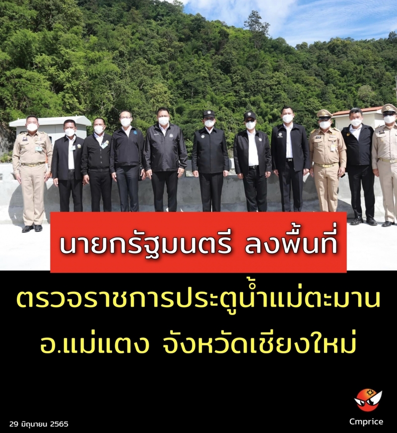 วันนี้ (29 มิ.ย. 65) พลเอกประยุทธ์ จันทร์โอชา นากยกรัฐมนตรีและรัฐมนตรีว่าการกระทรวงกลาโหม พร้อมคณะลงพื้นที่ติดตามความคืบหน้าโครงการเพิ่มปริมาณน้ำในอ่างเก็บน้ำเขื่อนแม่กวงอุดมธารา ณ ประตูระบายน้ำแม่ตะมาน อำเภอแม่แตง จังหวัดเชียงใหม่ โดยมี นายประจญ ปรัชญ์สกุล ผู้ว่าราชการจังหวัดเชียงใหม่ พร้อมด้วย นายศักดิ์ชัย คุณานุวัฒน์ชัยเดช รองผู้ว่าราชการจังหวัดเชียงใหม่ และส่วนราชการ ให้การต้อนรับ