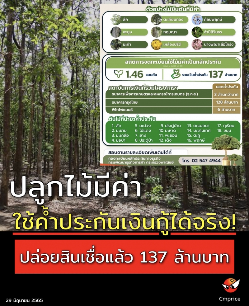 | • ปลูกไม้มีค่า ใช้ค้ำประกันเงินกู้ได้จริง! ปล่อยสินเชื่อแล้ว 137 ล้านบาท |