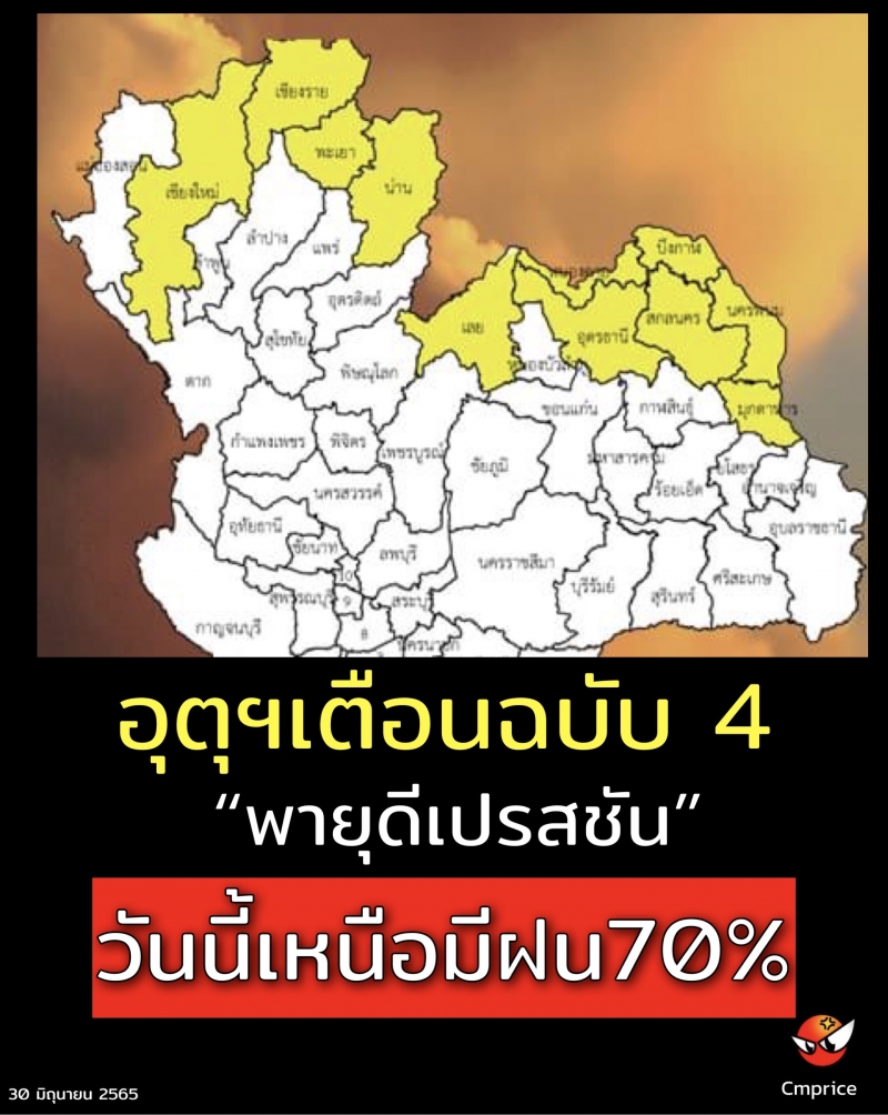 มีฝนฟ้าคะนองร้อยละ 70 ของพื้นที่ กับมีฝนตกหนักบางแห่ง