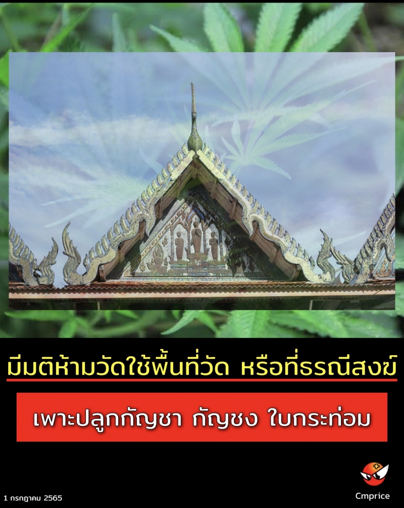 | • มหาเถรสมาคม มีมติห้ามวัดใช้พื้นที่วัด หรือที่ธรณีสงฆ์ เพาะปลูกกัญชา กัญชง ใบกระท่อม |