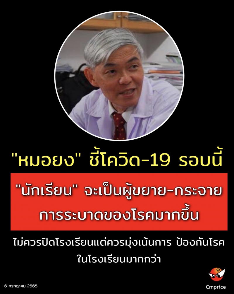 | • "หมอยง" ชี้โควิด-19 รอบนี้ "นักเรียน" จะเป็นผู้กระจายการระบาดของโรคมากขึ้น |