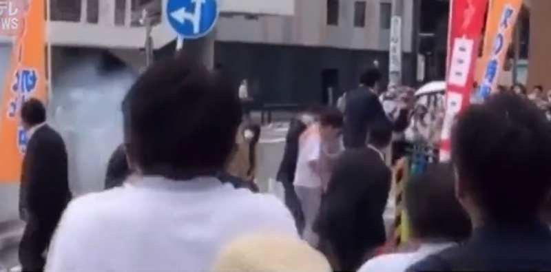 คลิปวินาที คนร้ายซึ่งเป็นชาย ลอบยิงอดีตนายกรัฐมนตรีชินโซ อาเบะ จากทางด้านหลัง ระหว่างกำลังขึ้นเวทีปราศรัย ที่เมืองนารา ทางตะวันตกของประเทศ เมื่อช่วงเช้าของวันศุกร์ตามเวลาท้องถิ่น โดยคนร้ายยิงใส่อดีตนายกฯ ถึง 2 นัดด้วยกัน ทำให้อดีตผู้นำญี่ปุ่น ล้มลงกับพื้น ขณะที่เจ้าหน้าที่สามารถจับกุมคนร้ายได้ในทันที ... เบื้องต้น มือปืนเป็นอดีตกองกำลังป้องกันตนเองทางทะเล