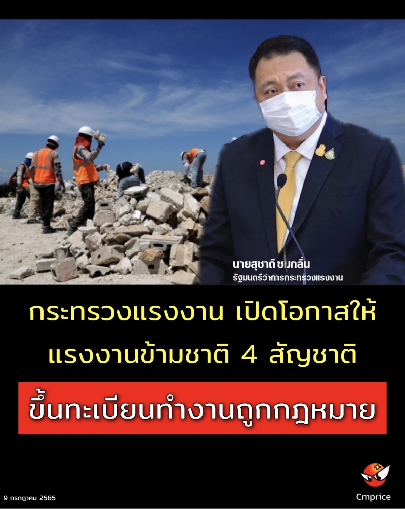 | • กระทรวงแรงงาน เปิดโอกาสให้แรงงานข้ามชาติ 4 สัญชาติ ขึ้นทะเบียนทำงานถูกกฎหมาย |